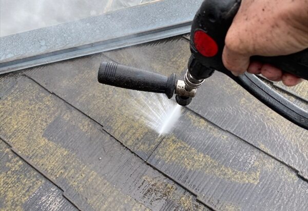 本日は屋根と外壁の高圧洗浄の様子をお伝えいたします! 塗装作業に入る前に、高圧洗浄機を使い屋根や外壁に付着している、カビや苔、藻、剥がれかけた塗膜を高い水圧で落としていきます。 これら、建物にとって不要な物を塗装前にきちんと取り除くことで、より美しく仕上がるこ・・・