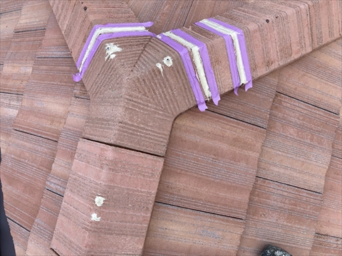 棟瓦の補修も兼てプライマー塗布後にシーリングを充填します。