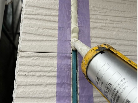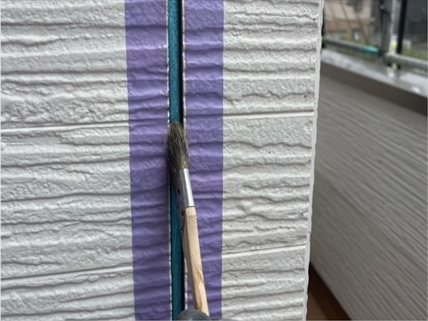 充分にシーリングが硬化しましたら塗装の工程になります。(シーリング先打ち)
