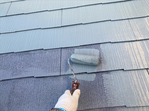 翌々日、屋根が乾いている事を確認し下塗りです。(その時の気候など職人が状態を判断し施工します)