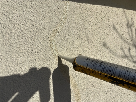 シーリング材で処置をする前にプライマーで密着性を高めます。