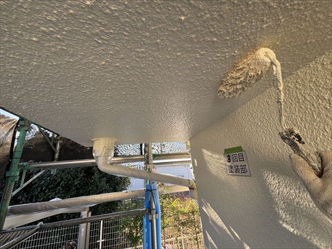 今回使用した塗料のEC-5000PCM-IRは、塗面のひび割れに適応してひびを表面化させず、水の浸入を抑制。防水性を維持します。