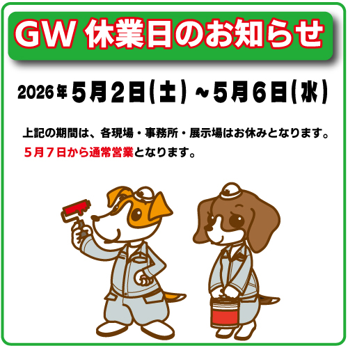 ★休業期間中のお問合せやご相談などは、5月7日以降、迅速に対応させて頂きます。